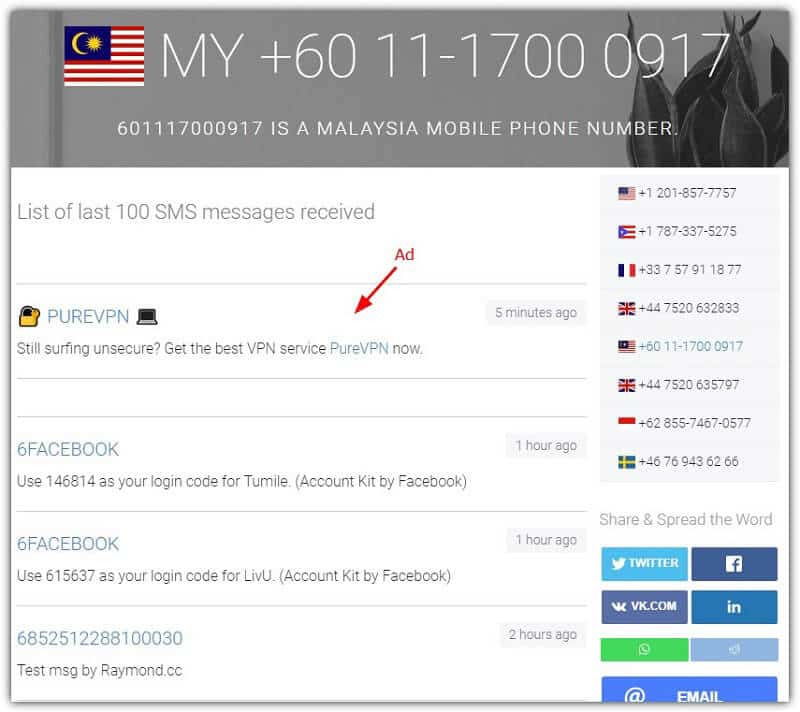 일부 서비스에서는 이 사이트의 번호를 이미 블랙리스트에 올려서 사용이 불가능할 때도 있음