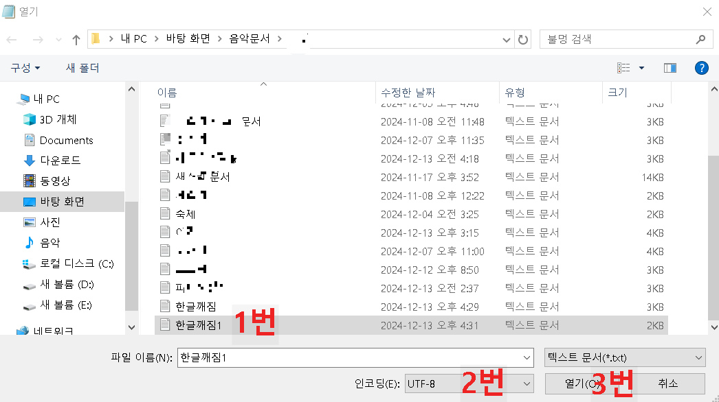 2. "메모장" -> 파일 열기 -> 파일 선택