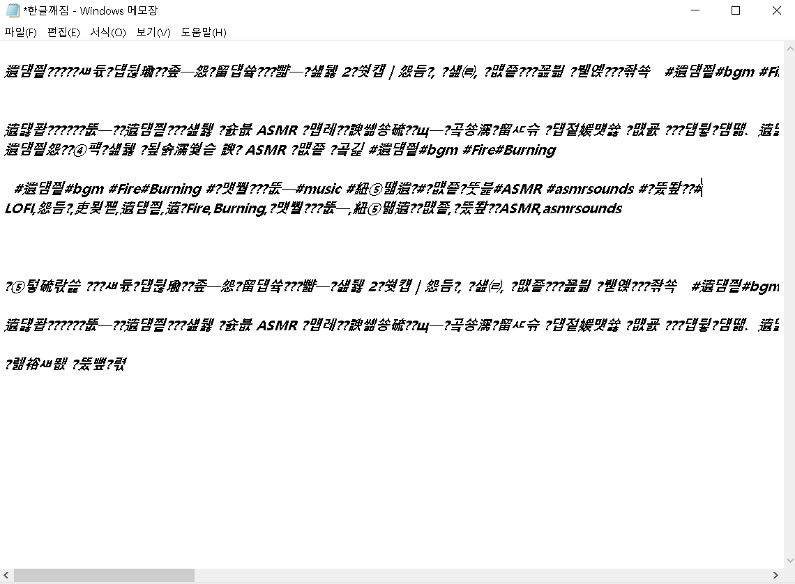 - 윈도 10에서 메모장 실행 시 이상한 문자가 나옴.
