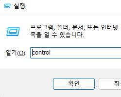 - ② 실행 창에 control을 입력하고 Enter 키를 누르면 제어판이 열립니다.