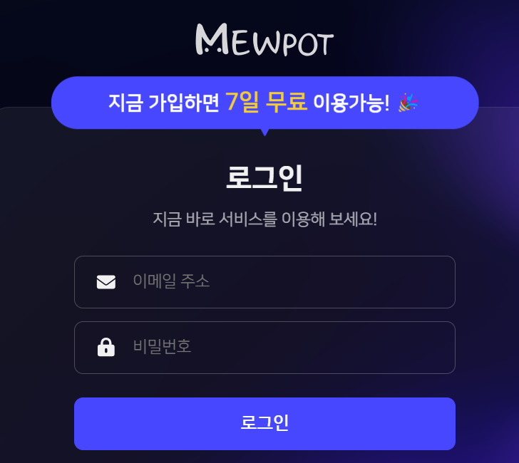 뮤팟의 7일 무료 체험을 원하신다면 아래의 링크를 통해 뮤팟 사이트로 접속하면 됩니다.. 접속 후  '무료 체험하기'를 누르면 7일 동안 자유롭게 사용할 수 있다