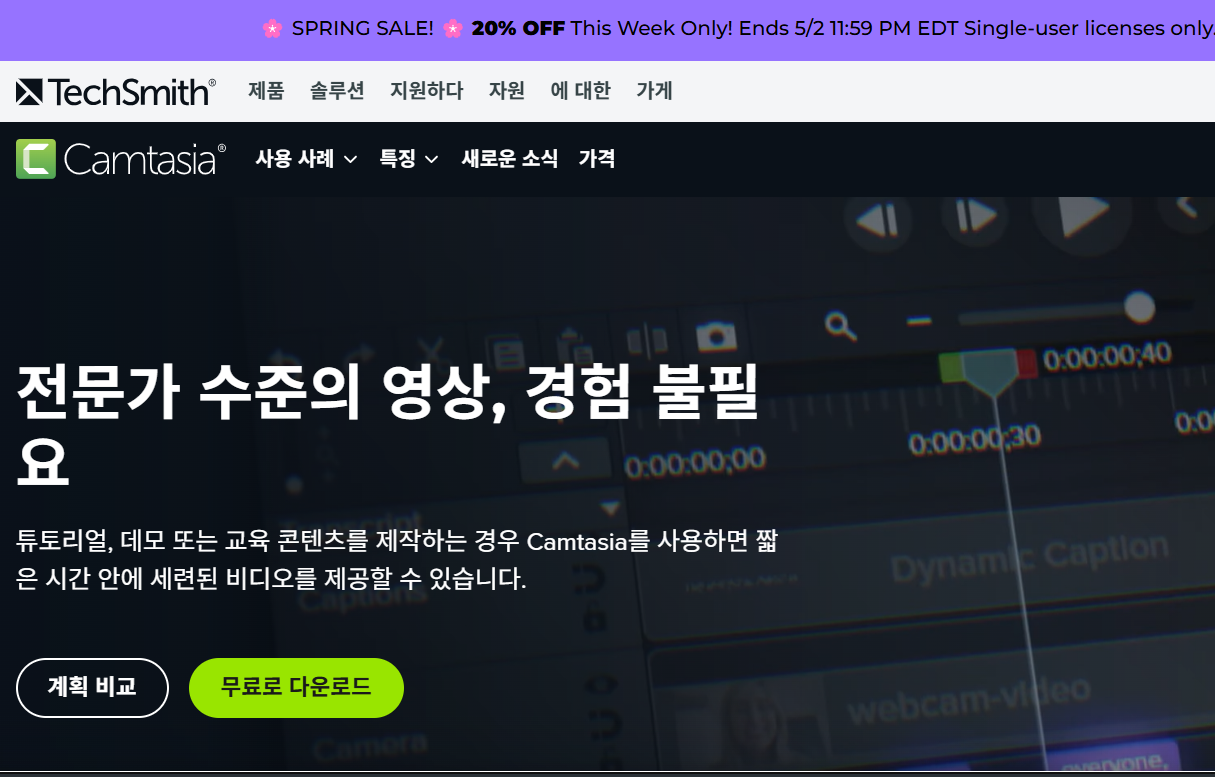 Camtasia는 유료 프로그램이지만, 강력한 편집 기능을 제공합니다. 녹화 후 바로 편집할 수 있어, 콘텐츠 제작에 있어 매우 유용합니다. 특히, 다양한 템플릿과 효과를 제공하여 전문적인 영상을 제작할 수 있습니다.