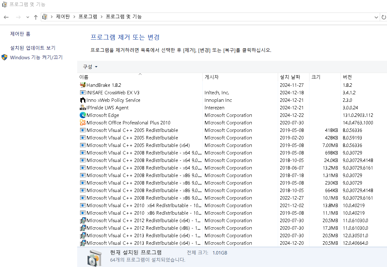 - 제어판 > 프로그램 및 기능에서도 프로그램을 제거할 수 있습니다.